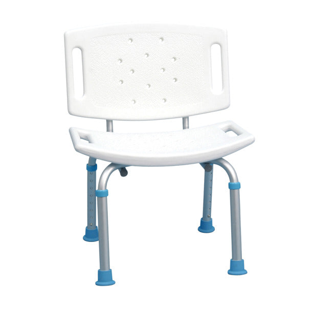Provide comfort and safety while showering or bathing. The AquaSense® Adjustable Bath Seats with Backrest are made from lightweight aluminum, with blow-molded plastic for the seat and the backrest. They feature a textured surface, large drainage holes, handles in both seat and back, and slip resistant rubber safety tips. Adjustable legs raise or lower the seat height.