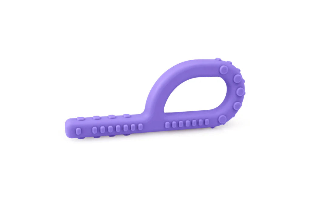 Just like the original smooth Grabber, the Textured Grabber has an easy-to-hold loop and a long extension to reach the back molars. Use it as a safe alternative to chewing on one's hands, shirts, pencils, etc. It can also be used as an oral motor therapy tool to practice biting/chewing skills without the risk of choking, build jaw strength and stability, and exercise the mouth muscles.