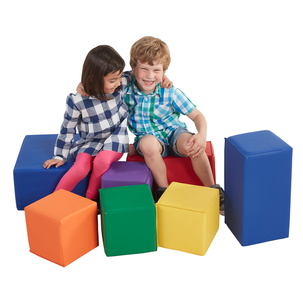 Learn through play with this 7-piece block set. Great for developing creativity and motor skills as you stack, move, build and create with these soft foam blocks. A fun playtime solution in classrooms, preschools, daycares, playrooms, and at home. These blocks have a dense non-toxic foam cores covered with soft leather material.