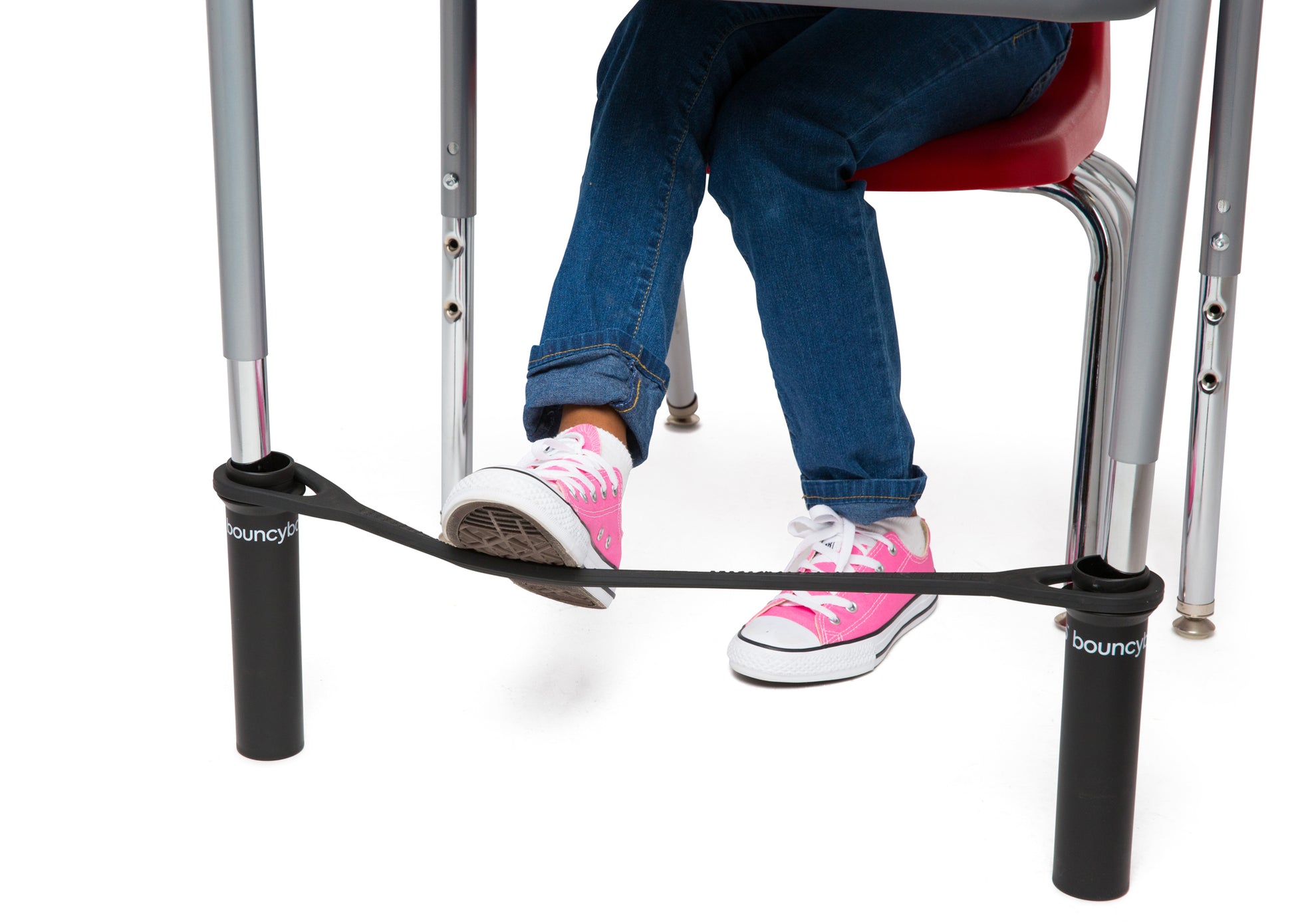 The ORIGINAL Bouncyband for Desks increases focus and academic performance by giving students an outlet for excess energy while working. Moving while at work enables kids to alleviate anxiety, hyperactivity and boredom. An independent Clemson University study concluded that using Bouncybands students stay on task 10% longer—an average of 35 minutes each day! Kids enjoy bouncing their feet and feeling the tension to relieve their stress and increase their concentration. The patented support pipes on the Bouncyband prevent it from slipping down the desk legs onto the floor, becoming a nuisance like all competitive products. Teachers love how Bouncybands are quiet and don't disturb or distract other students.