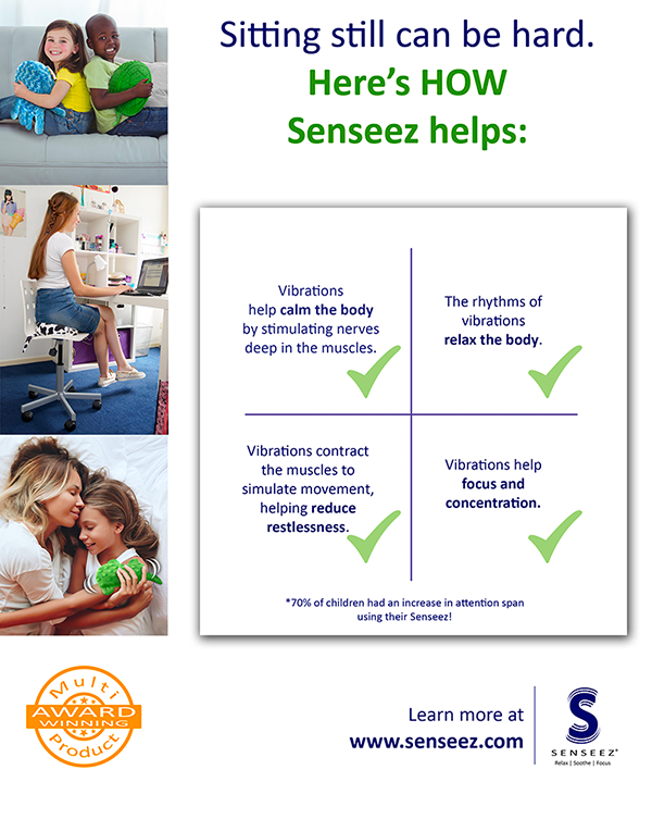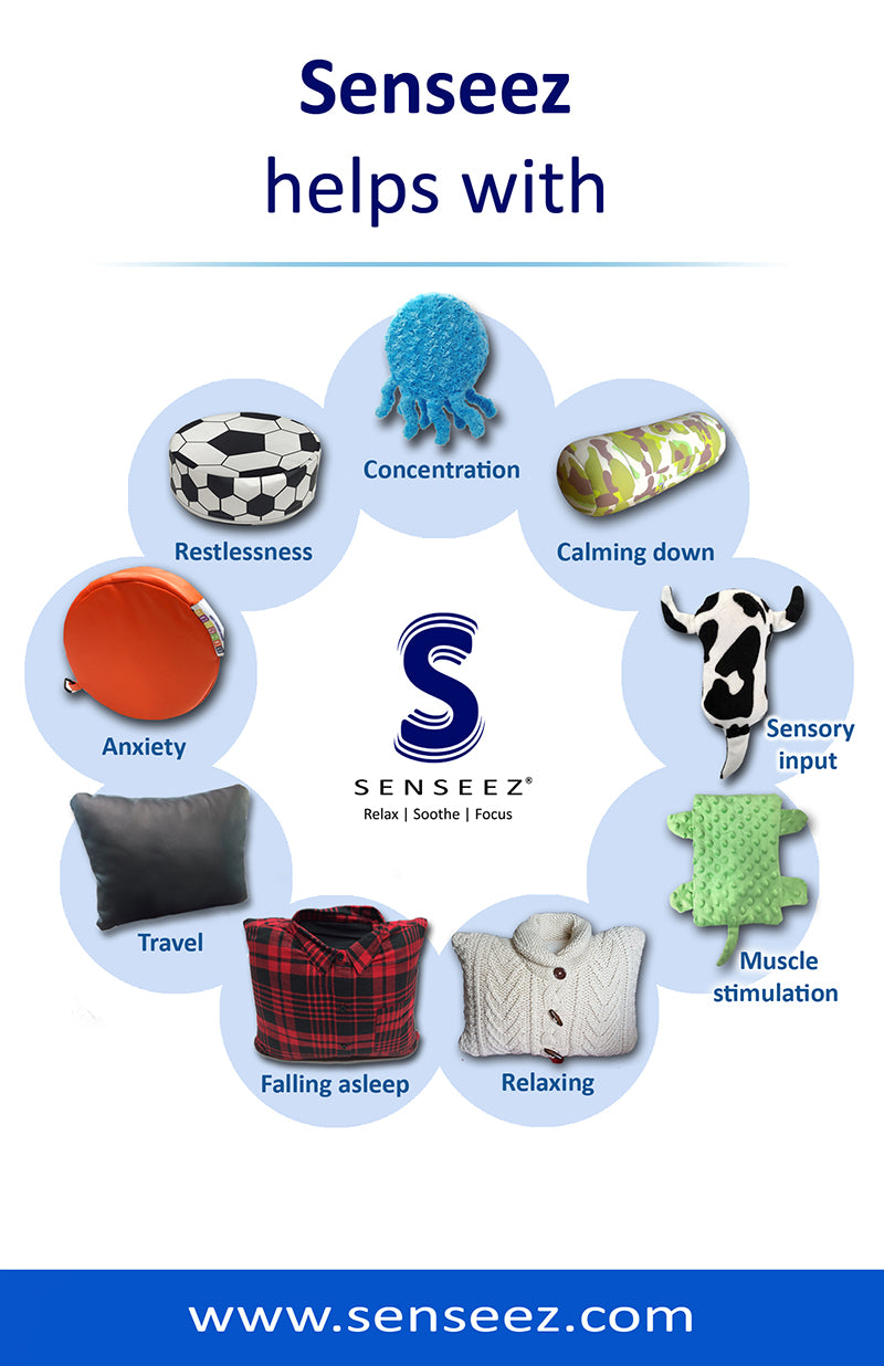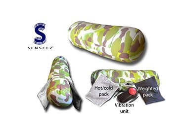 This unique therapeutic pillow vibrates when squeezed. It also has separate hot/cold and weighted packs. Three ways to calm your senses!
