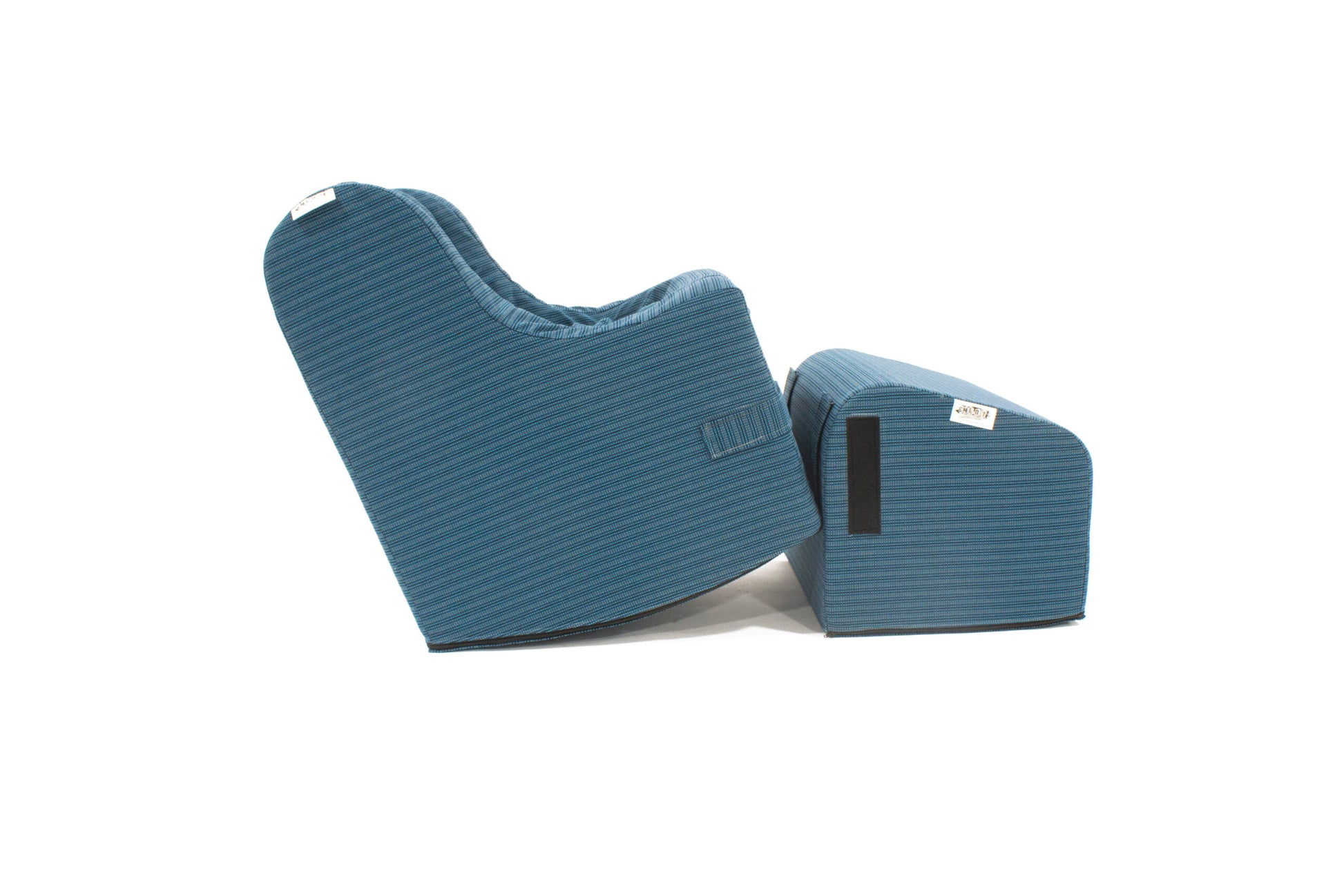 The Chill-Out Chair comes standard with a multi-purpose ottoman and multi-use modular support wedge, covered in matching fabric.