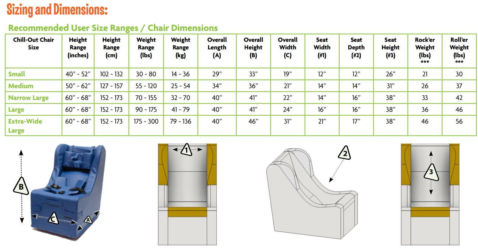 *Chair sizes available to accommodate pediatric and adult users.