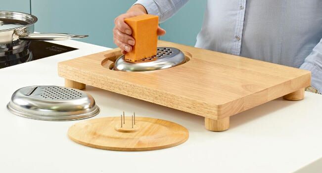 Collecting bowl: Integral collecting bowl to easily transfer grated food for cooking