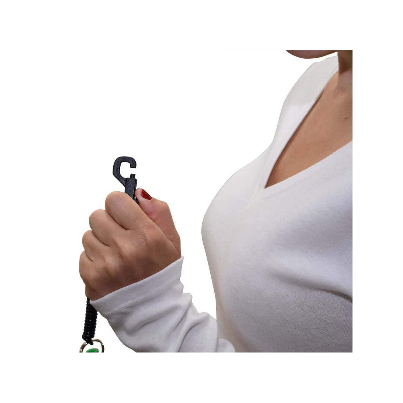 The springz chewy holder and natural strap clips to your child's shirt collar, shoulder or sleeve. The springz lanyard also extends from 4" to 18" so that the chewy holder can be clipped to a belt loop or pants pocket if desired. The springz chewy holder is a discreet way to hold your child's favorite chewy to keep it clean, off the floor and handy when needed.