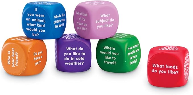Spark discussions and personal responses while improving the linguistic skills of kids. 6 Cubes feature 36 engaging questions to build speaking and listening skills. Also supports fluency in ELLs and students in speech programs. Includes activity guide.