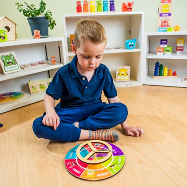 Explore emotions through hands-on learning with the emotions steering wheel! Kids will love taking the wheel and steering it towards different feelings with this beautifully crafted wooden toy.