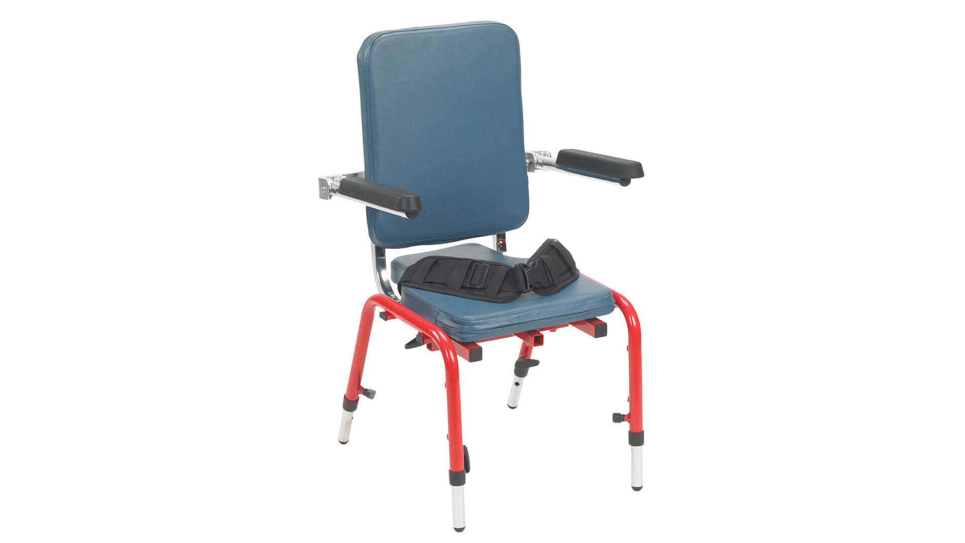 The First Class school chair is designed to facilitate good seating posture while in the home, at therapy or in the classroom. The First Class Chair will grow with your child as legs are height adjustable; the seat is also depth adjustable. Includes flip back, height adjustable armrests and pelvic belt.