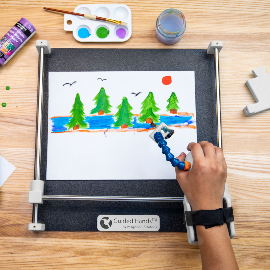 - Guided Hands®: The flagship assistive device that helps individuals with limited hand mobility write, paint, draw and access technology. Includes our spherical, joystick and flat handpieces.
