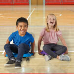 - Kids can scoot, glide, and roll around the room while building core strength and coordination on these handled scooter boards.
