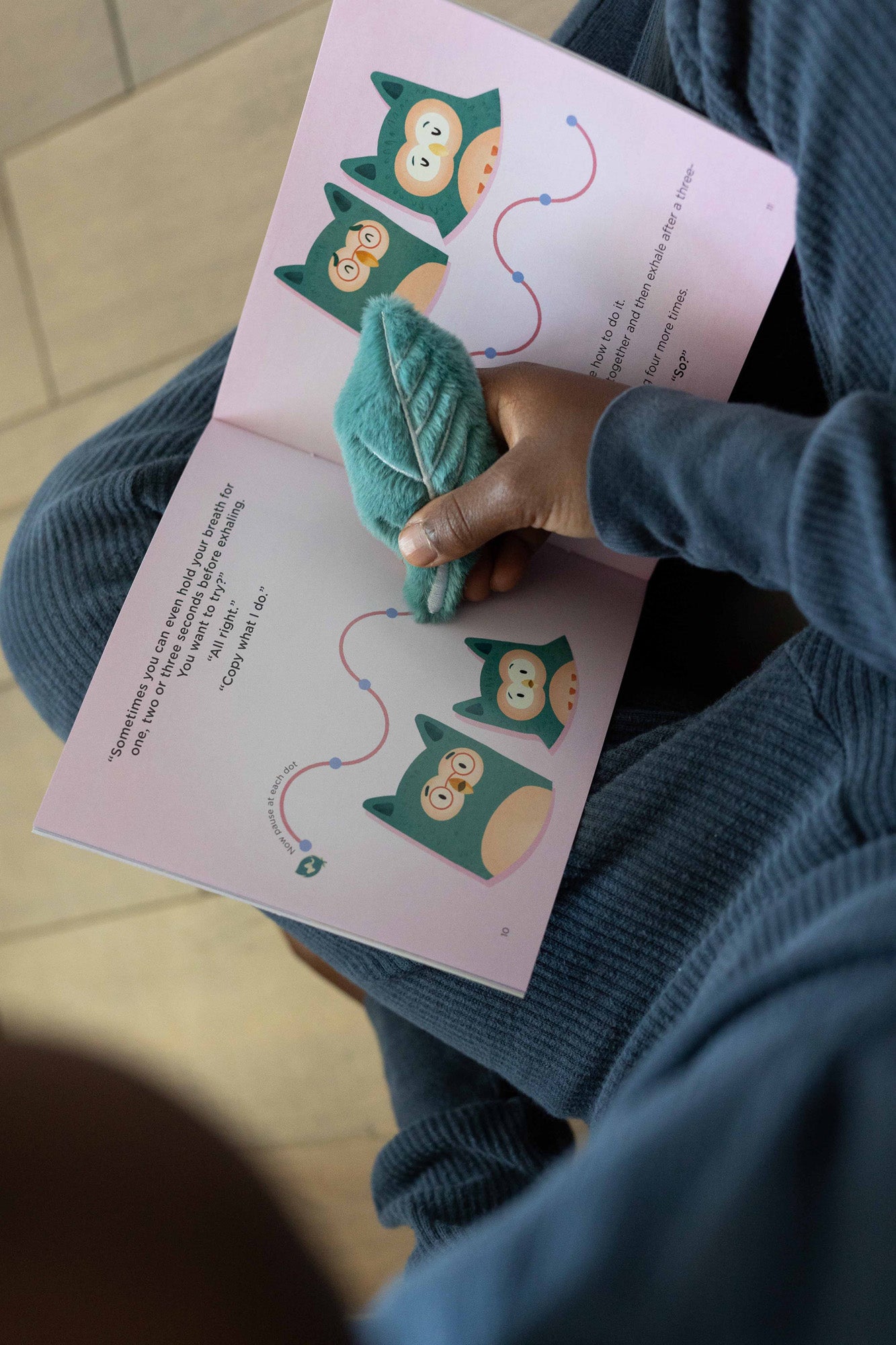 Zigzag the Owl - Zigzag, a playful little owl full of energy, lives her emotions intensely and struggles to regulate her energy levels. Follow her eventful day and learn with her how to return to calm and gently fall asleep to the rhythm of her breaths. If your child is restless once bedtime arrives: use the soft feather-shaped fidget as a guide to begin breathing techniques found in the book.