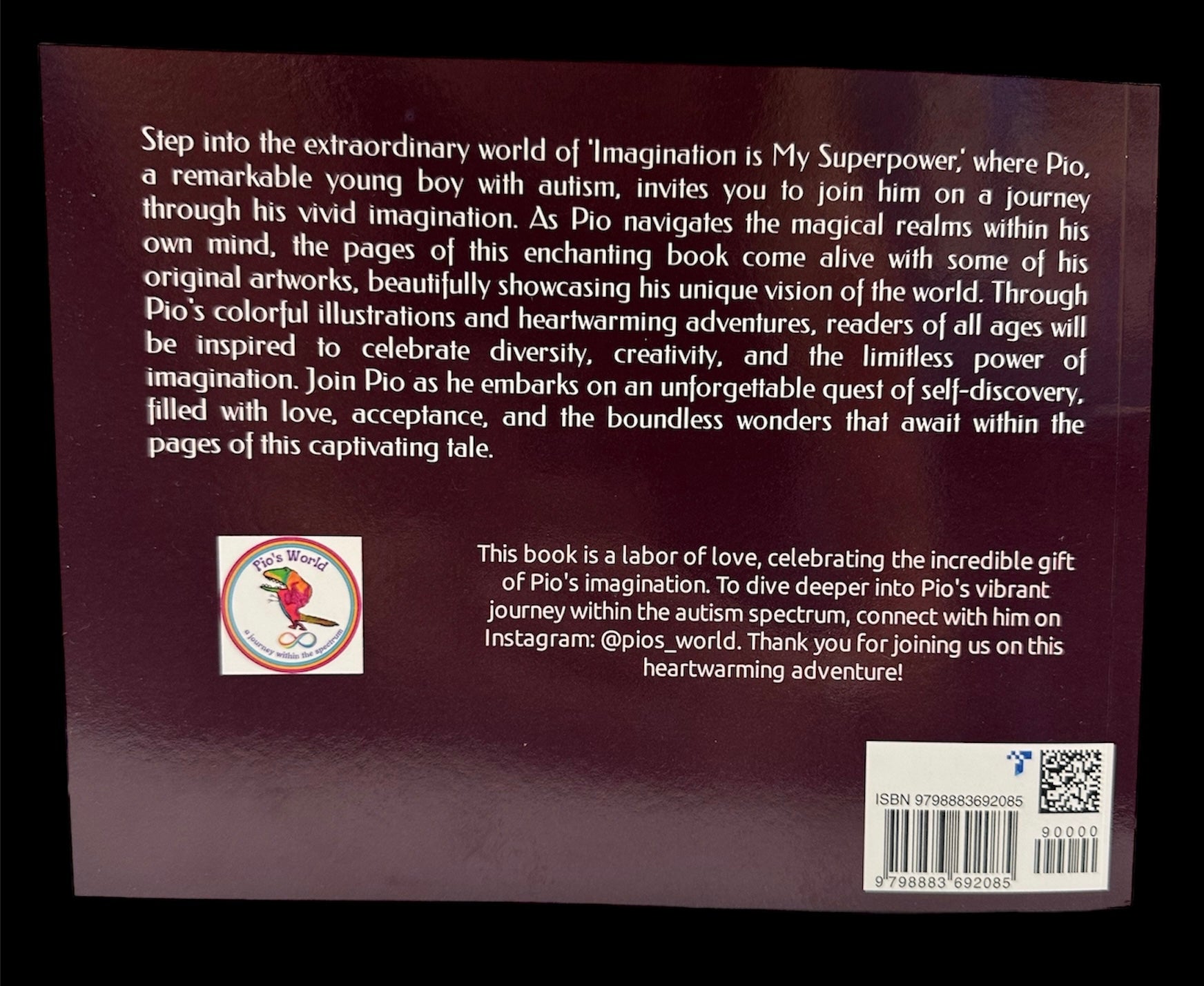 Step into the extraordinary world of "Imagination is my Superpower,' where Pio, a remarkable young boy with autism, invites you to join him on a journey through his vivid imagination. As Pio navigates the magical realms within his own mind, the pages of this enchanting book come alive with some of his original artworks, beautifully showcasing his unique vision of the world. Through Pio's colorful illustrations and heartwarming adventures, readers of all ages will be inspired to celebrate diversity, creativity, and the limitless power of imagination. Join Pio as he embarks on an unforgettable quest of self-discovery, filled with love, acceptance, and the boundless wonders that await within the pages of this captivating tale.