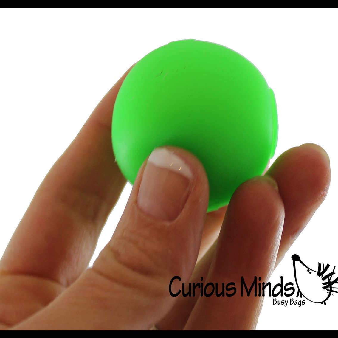 The balls are about 1.5" when they are round, but can be stretched out! These are very calming because they have a very silky soft feel, and are filled with a thick soft almost fluffy doh that looks like soft serve ice cream. You need to feel it to really know how nice these are.