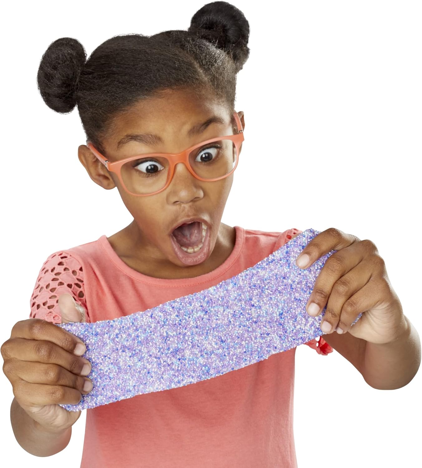 FOAM AND CONFETTI FOAM: These 2 cans feature pink strawberry scented and sugar cookie scented multicolor modeling foam for kids with a squishable texture and soft beads