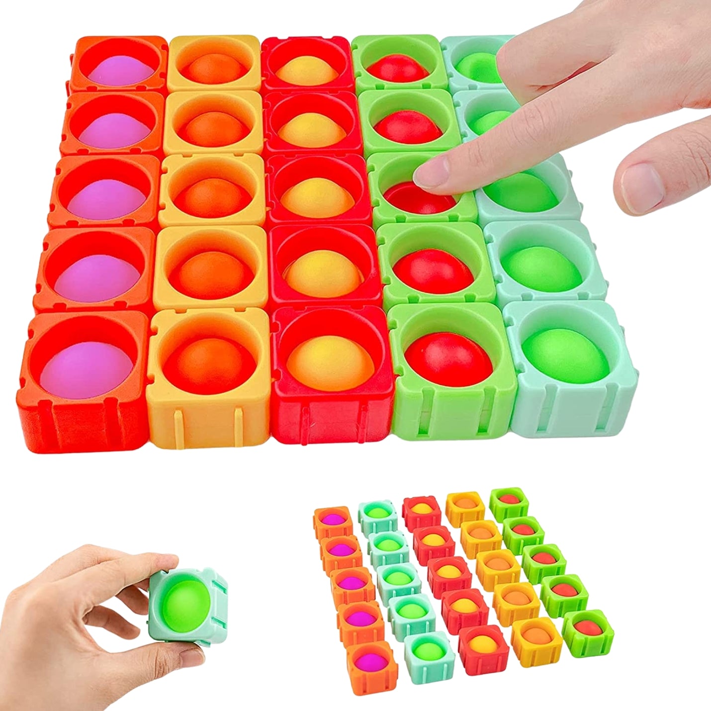 * These individual popper blocks are made of high-quality silicone with hard shells. They are safe, sturdy and durable. In addition, the toy is waterproof and can be washed at any time.