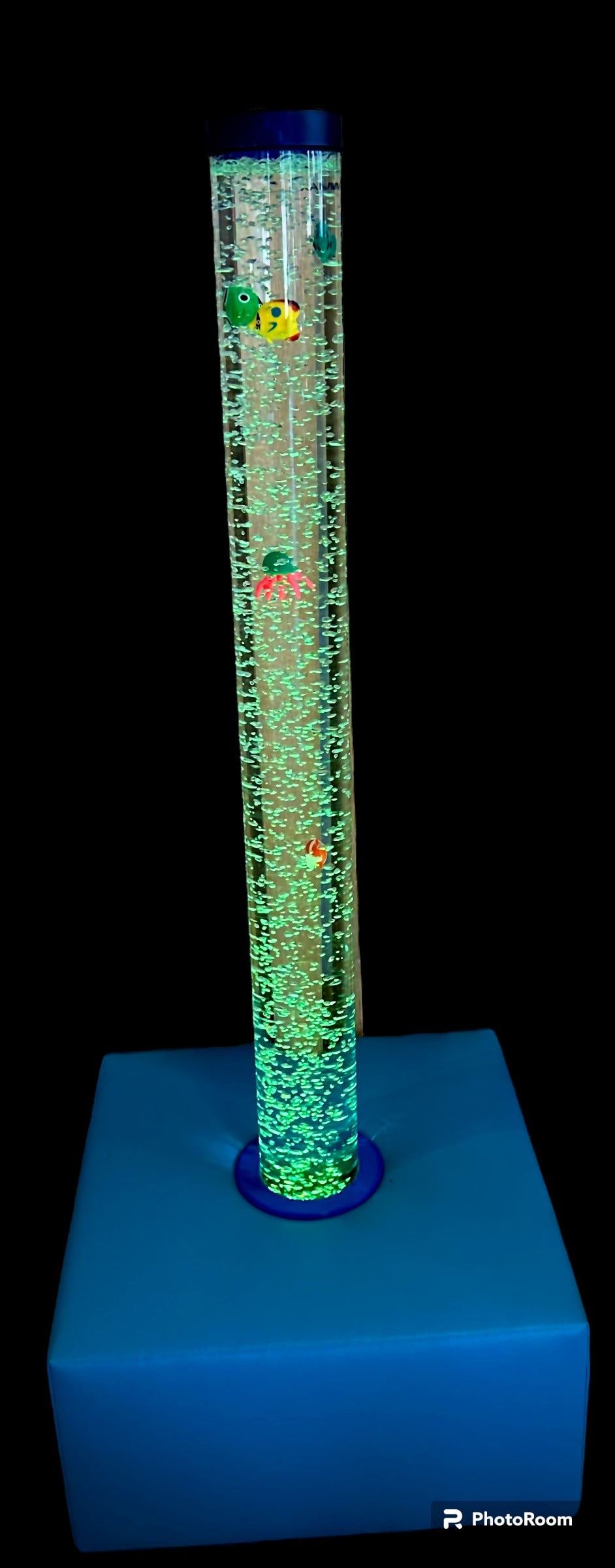 Looking to make your bubble tube more secure without having to mount it to your wall? Have little ones that like to get close and explore the fish and bubbles? This 19.5 in x 9.5 in square upholstered bubble tube base allows you to explore all that the bubble tube has to offer without the risk of it tipping over and provides a comfortable place to sit and enjoy the soothing bubbles. *Bubble tube sold separately.