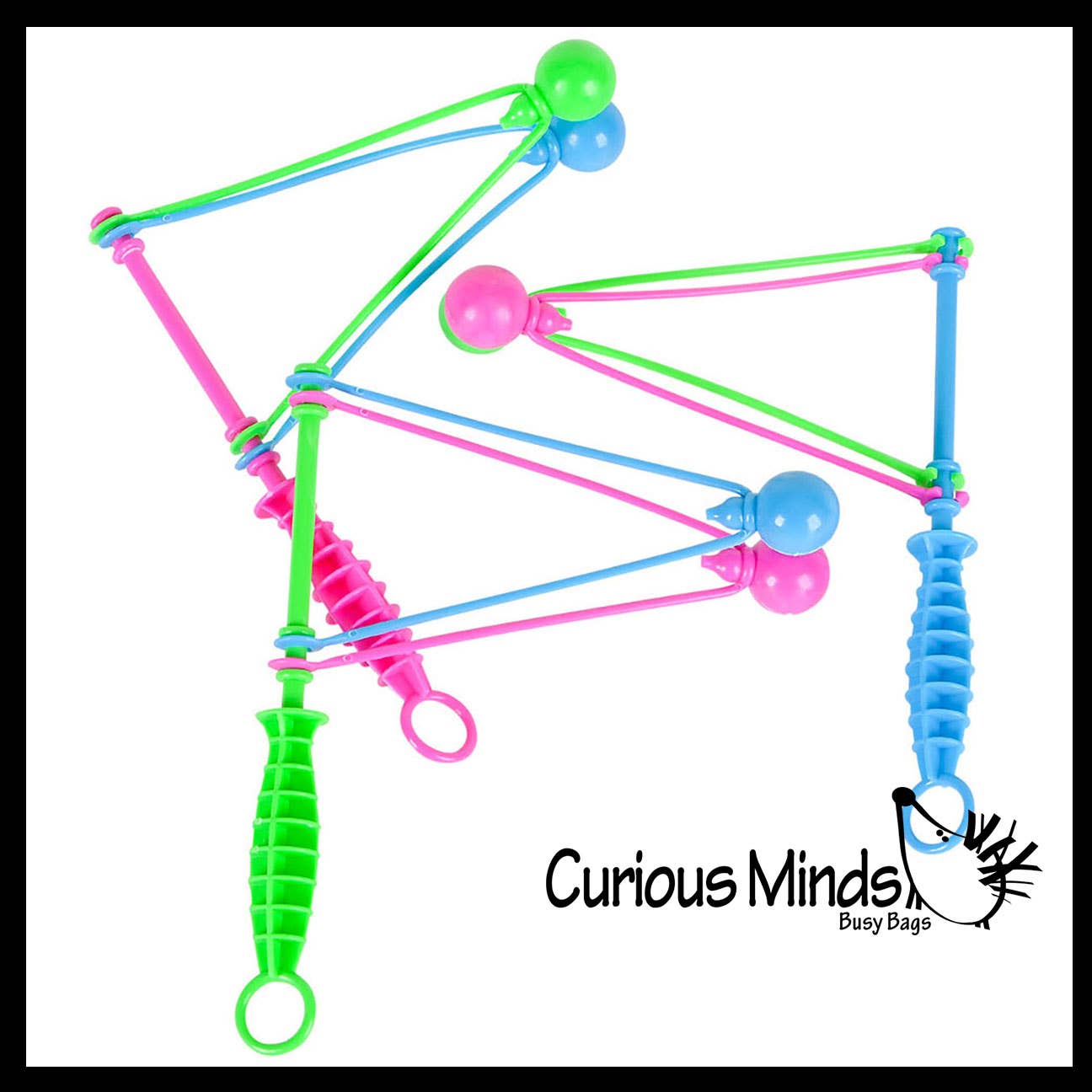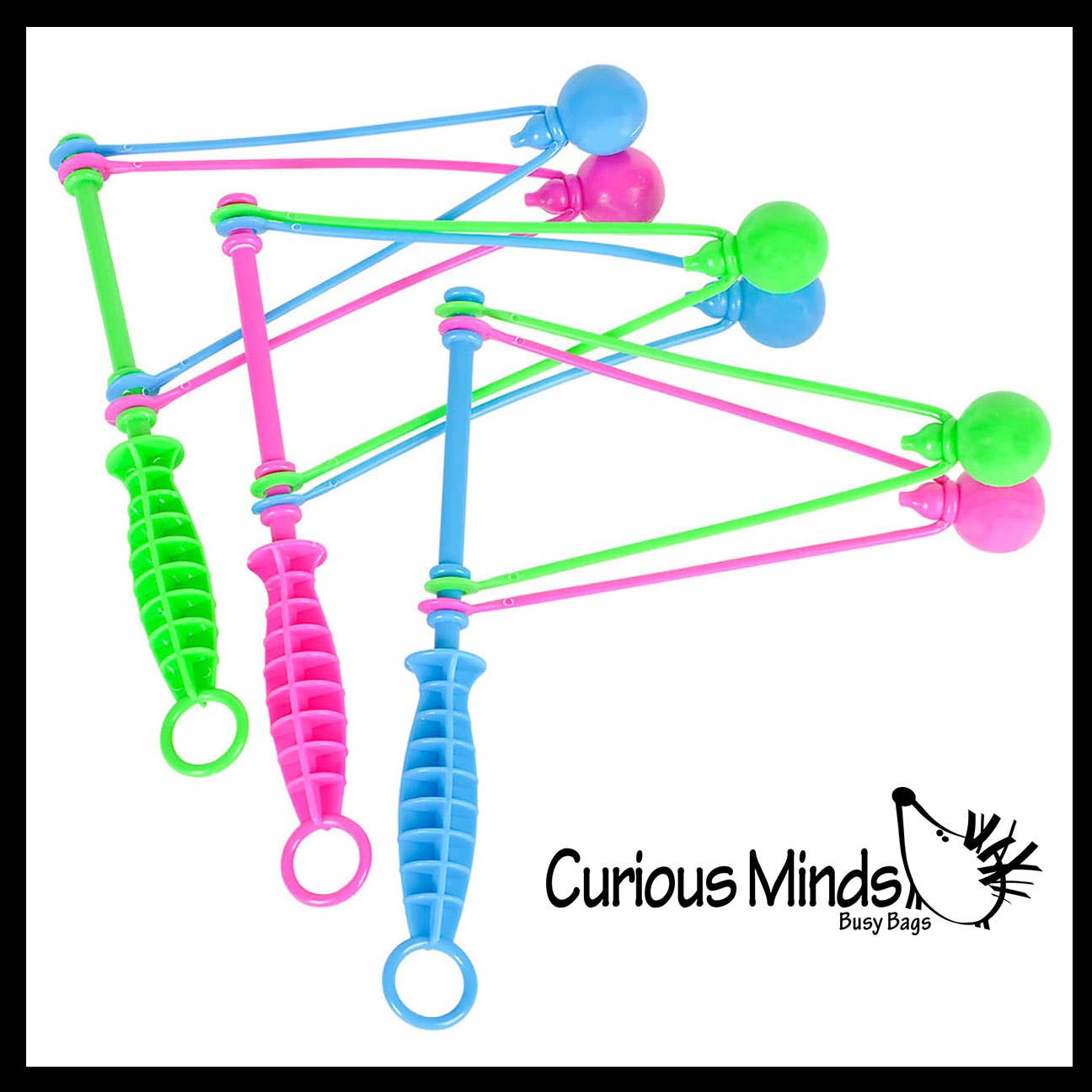 SET OF 1 CLACKER TOY - Remember these colorful plastic clackers from when we were kids? It is basically a handle with 2 plastic balls attached on swinging arms. Rotate the toy just right with the correct speed and momentum and you can get them slapping and clapping against each other. It is fun when you can get the one arm to swing into a still ball, which then stops that one and puts the other in motion. Makes a cool repetitive sound for auditory learners. Makes a great party favor. Each clacker is 7.75" tall and has a 6" arm with ball.