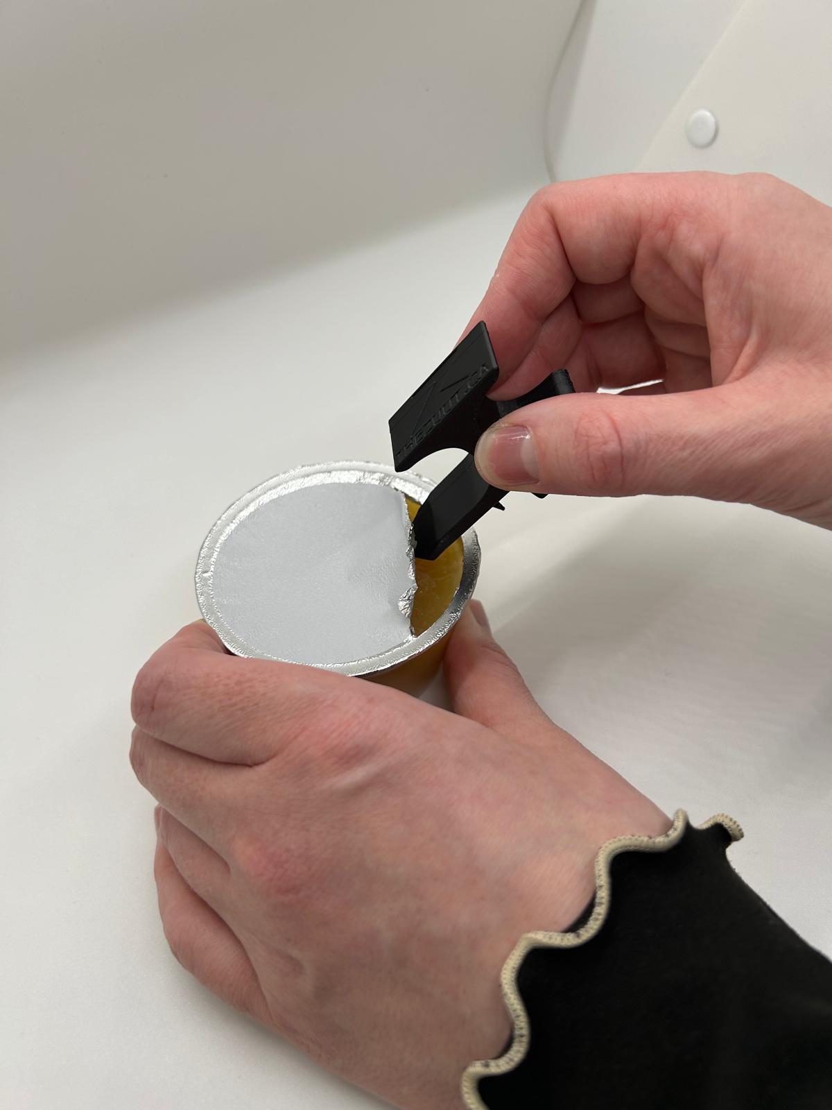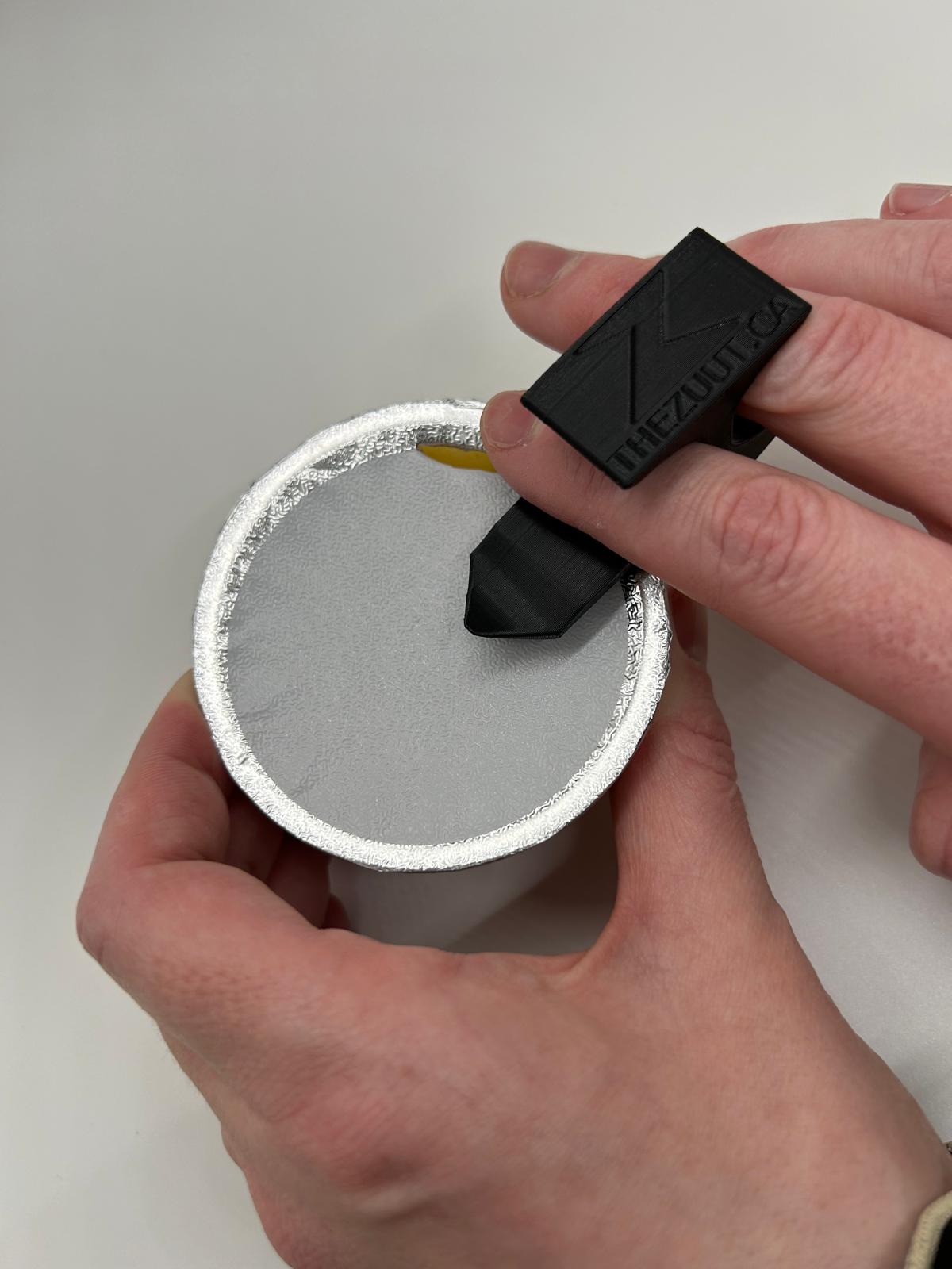 The Zuut Opener is a thoughtfully designed assistive tool that transforms the often frustrating task of opening sealed containers into a simple, effortless process.