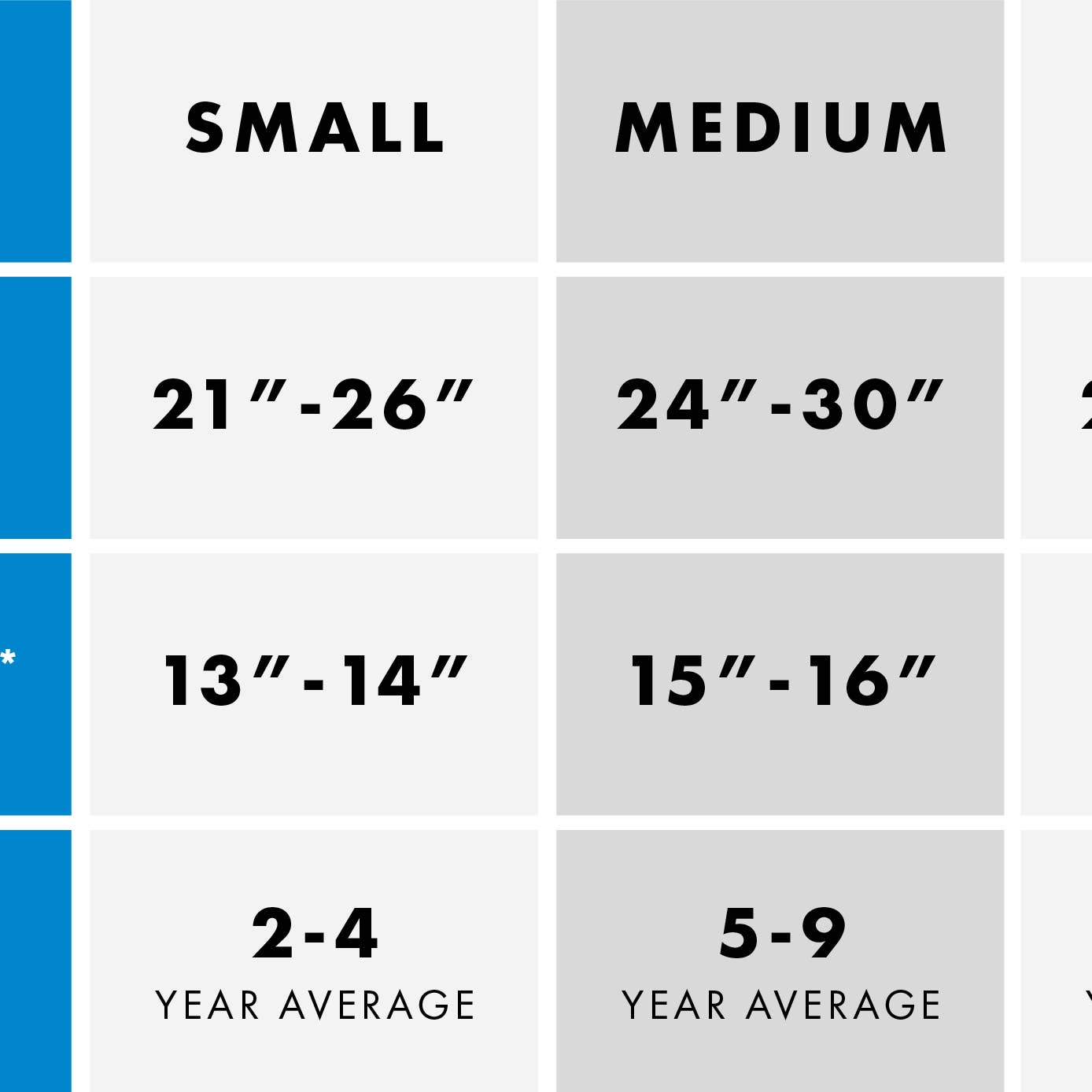 Measurements: Small: 21-26 inches wide x 13-14 inches long Medium: 24-30 inches wide x 15-16 inches long Large: 28-34 inches wide x 18-19 inches long