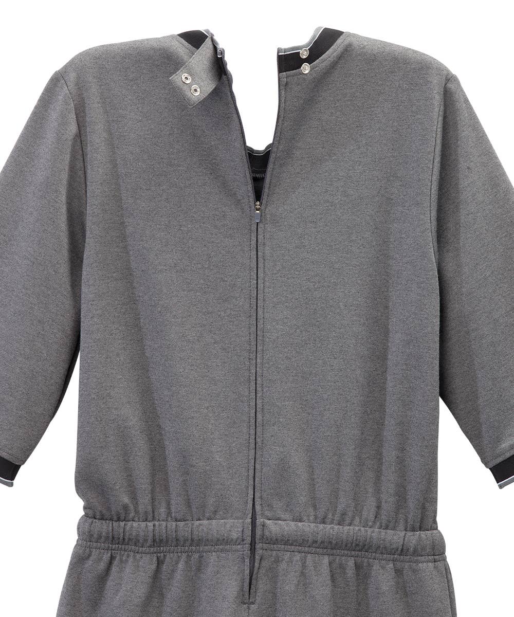 These special needs anti strip one piece jumpsuits can help solve compulsive stripping issues. These back zip jumpsuits feature an Incredibly long zipper that extends to below the knee for easy assisted dressing. Dome closures at neck helps prevent disrobing. Elasticized waistband and roomy seat for an easy, comfortable fit. This zip back anti-strip jumpsuit features a strong polyester-cotton knit and is geared to help make life easier for patients and their caregivers.