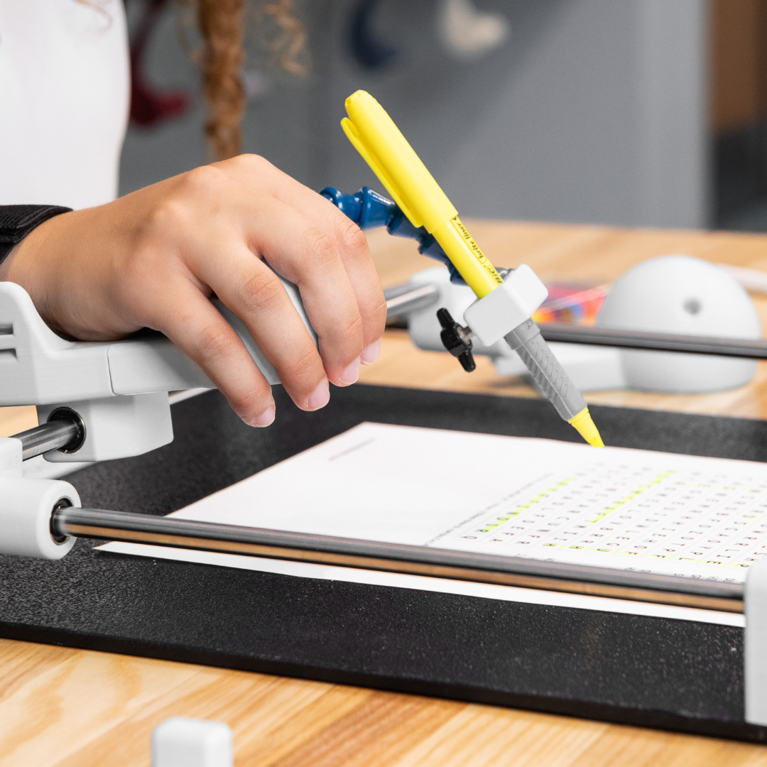 Guided Hands is an assistive device that enables individuals with limited hand mobility to write, paint, draw, and access technology.